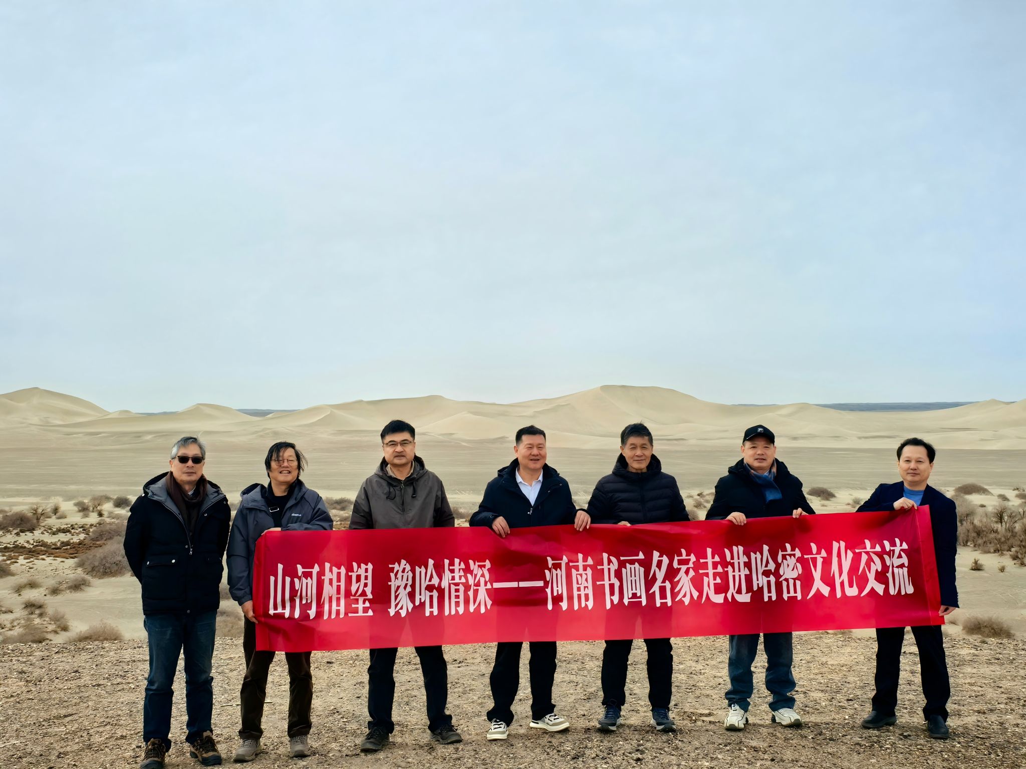张新词教授出席“山河相望・豫哈情深”——豫疆书画名家赴哈密文化交流活动。豫疆6名书画名家齐聚哈密,通过采风创作、交流笔会、艺术培训及作品展览等形式,搭建豫哈文化交流桥梁。活动期间,艺术家们探访南湖沙漠、胡杨林等自然人文景观及红色教育基地和乡村,积累创作素材并为当地群众创作作品,还走进河南对口支援新疆工作前方指挥部开展交流笔会。
